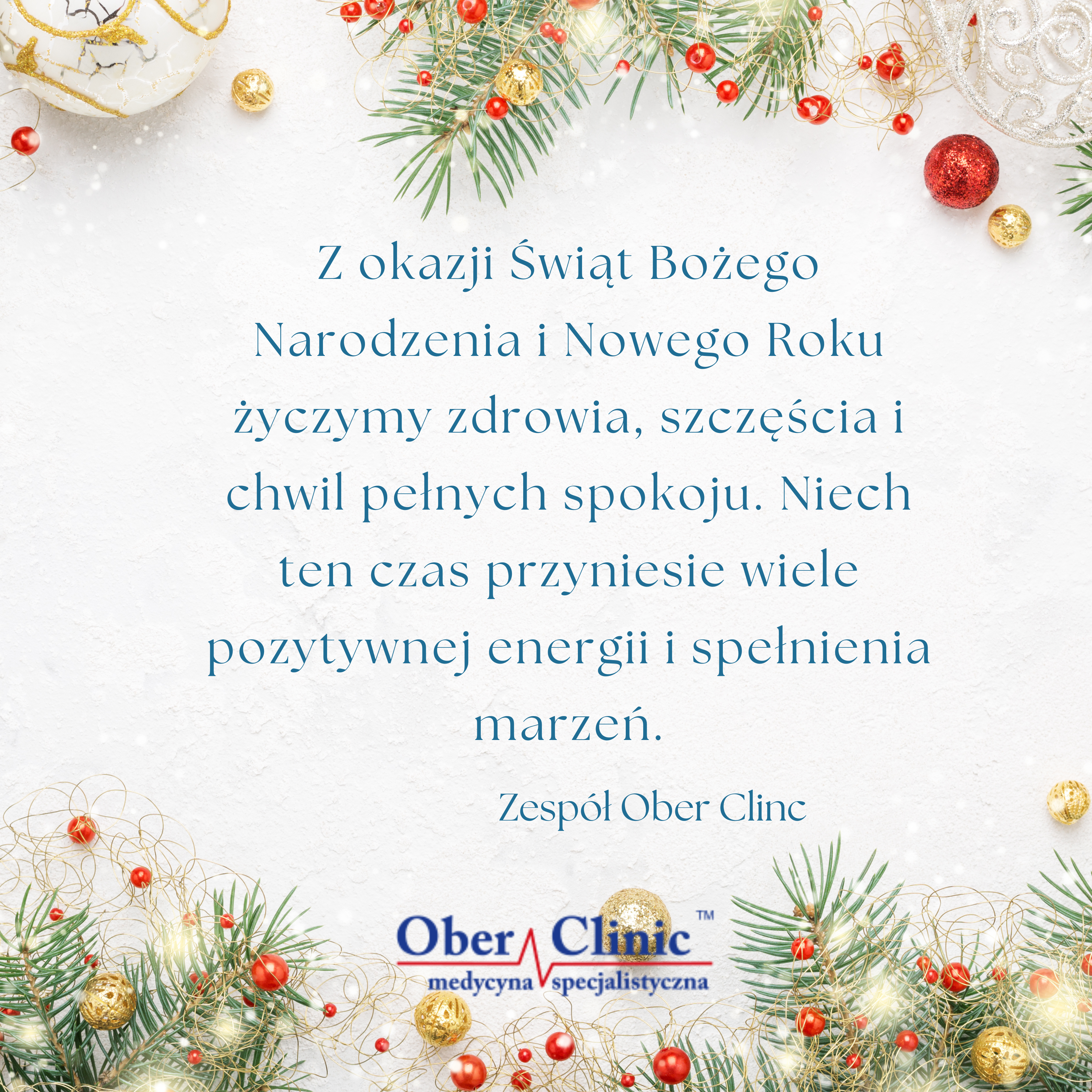 Z okazji Świąt Bożego Narodzenia i Nowego Roku życzymy zdrowia, szczęścia i chwil pełnych spokoju.